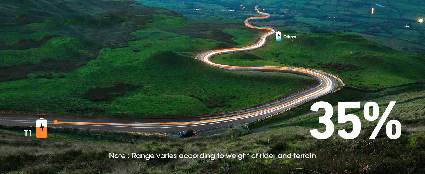 Adopting high-capacity battery, 48V 20Ah battery capacity ensures that your e-bike has a longer range. Whether it's for daily commuting or weekend excursions, it's easy to cope with without the need for frequent charging, making your ride more free and unrestrained. In pedal assist mode, the range is up to 90 miles per charge, and in pure electric mode, the range is about 60 miles.